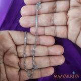Crafted with a shimmering silver material, our Shimmer Silver Chain adds a touch of elegance and sophistication to any outfit. Made with high-quality materials, this chain is durable and long-lasting. Elevate your style with this stunning accessory.