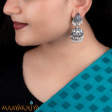 Mura the Lion face that has been embossed on this  ethnic Silver Oxidized Jhumka is inspired from the  Hoysala Time. The Mura Jhumka is beautifully handcrafted in Silver with a lot of Freshwater pearls.