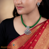 Ramya Padakam (looks like a Rose) designed pendant set has been beautifully handcrafted in 92.5 silver . The white stones used in the shape of the flower is highlighting the pendant and this can be worn with traditional South Indian Attire as well as contemporary attire.