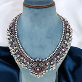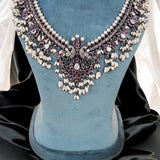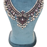 Enhance your jewelry collection with our exquisite Peacock Guttapusalu Necklace Set. Featuring a stunning peacock design adorned with vibrant kempu/red cubic zircons. The intricate craftsmanship of this necklace set will elevate any outfit and make a bold statement.