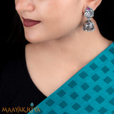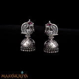 A very unique design in Silver Oxidized Creeper Jhumka with Kempu Stones beautifully handcrafted in Silver and Oxidized.