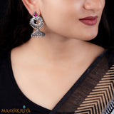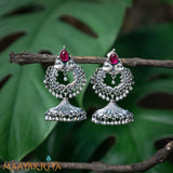 A very unique design in this oxidized Jhumka embellished with parrots, is beautifully handcrafted in Silver.