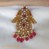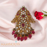 Crafted with a peacock design, the Sharvani Pendant boasts sparkling white Mossanite and striking Synthetic Pink Rubie stones. Perfect for adding a touch of elegance and color to any outfit.