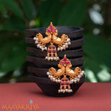 Yali is a mythical creature seen in many South Indian temples, often sculpted onto the pillars. These Yalis have been emossed on 92.5 Silver and finised with Gold polish . The real fresh water pearls hanging at the bottom has added a gorgeous look to these earrings.
